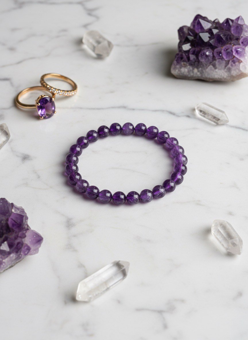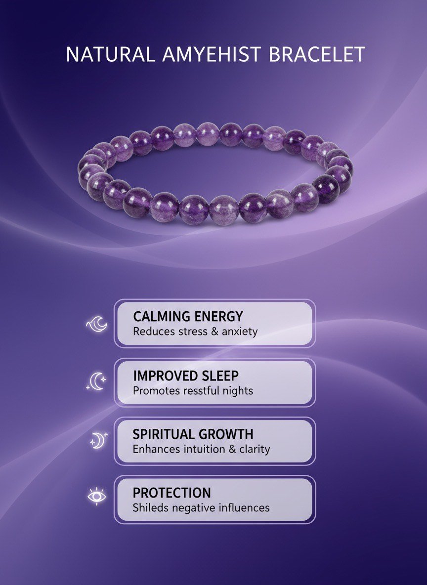 Amethyst’s distinctive six-sided crystal formation and natural inclusions lend each piece a unique character, emphasizing its authentic origin and craftsmanship.