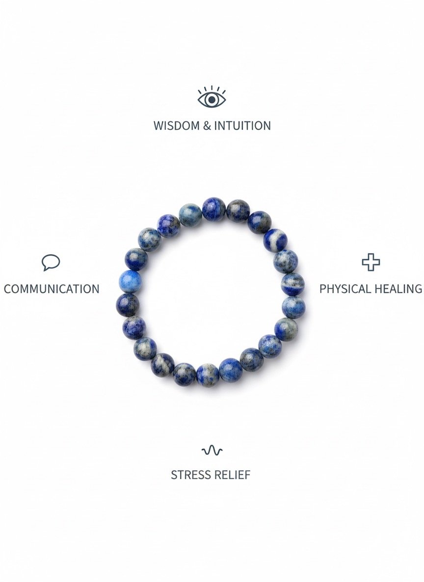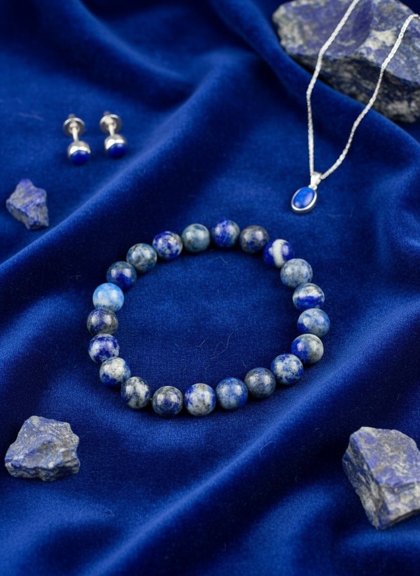 Discover the timeless elegance of our Natural Lapis Lazuli Bracelet, a stunning piece that combines ancient wisdom with contemporary style. Each bracelet features genuine lapis lazuli gemstones, renowned for their deep celestial blue color flecked with golden pyrite inclusions that resemble a starry night sky.